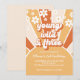 Jovem Selvagem e Três! Convite de terceiro aniversário inspirado no Retro Sunshine com margaridas ao estilo dos anos 70 e fontes e cores boho.