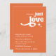 Este Convite para Casamento Laranja de Amor Retroativo é perfeito para um casal simples. Este olhar retrorreflector moderno é excelente de minimalista e a paleta de cores emite um tal sentimento retrorreflector da década de 70.