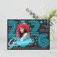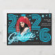 Convites Retro Neon Blue Photo Graduate Announcement