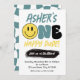 Retro One Happy Duo Happy Face Primeiro Convite de Aniversário