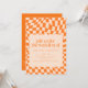Convites Retro Orange Abstract Check Wedding QR Code RSVP
