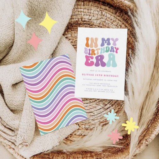 Convites Retro pastel, colorida era do aniversário moderno