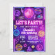 Retro pré-disquete 90s design Y2K com luzes néon vívidas em azul, rosa e roxo, para festas de aniversário de meninas e mulheres, excelente para patinagem em rolos e festas de dança em disco no estilo retrô.