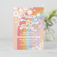 Celebrate in groovy style with this retro rainbow birthday invitation featuring pastel colors, daisies, peace signs, and playful 70s-inspired motifs. Perfect for kids parties, this vibrant design sets the tone for a fun, nostalgic celebration filled with peace, love, and joy. Customize with your childs name, party details, and create a keepsake guests will adore. Ideal for hippie, flower-power, and rainbow-themed birthdays.