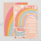 Celebrate your little ones milestone with this retro rainbow first birthday invitation! Featuring a whimsical pastel design with daisies, peace signs, and a vintage van, this groovy card sets the tone for a fun and cheerful party. Perfect for boho, hippie, or 70s-inspired themes, it adds a playful touch to your celebration while keeping guests excited and informed. Customize with your details to make it uniquely yours and create lasting memories.
