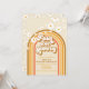 Quatro Ever Groovy! Retro inspirou o 4º convite de aniversário com fontes e cores do estilo 70, arco-íris e margaridas em cores do outono. cores marrom, bronzeado e laranja.