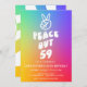 Este Retro Rainbow Peace Out Any Age Birthday Invitation é uma maneira perfeita de convidar amigos e familiares para uma festa! Este cartão apresenta um fundo arco-íris e uma grande Peace out que pode ser usada para qualquer festa de aniversário etária. Esta design moderna é perfeita para uma celebração de aniversário de homens ou mulheres.