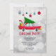 Um convite de festas de natal com um legal e velho carregando de carro vermelho, um pinheiro de natal verde em seu telhado e um presente guardado no tronco aberto. Bolas de Natal, flocos de neve e estrelas penduradas no topo. Colocado sobre um fundo prateado com estrelas na moda espalhadas por aí. Tem um belo estilo retro-anos 50.