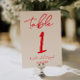Convites Retro Red Hand Written Wedding Table Number