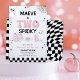 Retro Pink Halloween Dois segundo aniversário Spooky Convidando Halloween dois loucos, o segundo convite de aniversário de uma garota com dois fantasmas ranzinza, uma teia, aranhas, estrelas, um esmalte bonito, abóboras e texto retrô em preto e rosa. Este convite para segundos aniversários assustador também apresenta um padrão de tabuleiro de xadrez e é ideal para uma segunda festa de aniversário de outubro para uma garota.