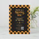 Convites Retro Spooky One Checkered Orange 1st Birthday