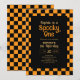 Convites Retro Spooky One Checkered Orange 1st Birthday