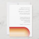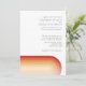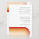 Um convite moderno com as cores do pôr do sol e um arco curvado com faixa retrô. A redação semicuronal pode ser alterada do convite dos pais para a noiva e o noivo. Um local para um código qr do site de casamento está incluído no verso do convite informal.