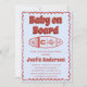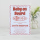Celebrate your little one in style with this retro-inspired "Baby on Board" baby shower invitation. Featuring bold vintage typography and a minimalist surfboard illustration in warm terracotta tones, this design blends modern boho charm with a subtle southwestern aesthetic.