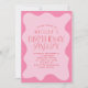 Um convite de aniversário retrô, tipo ousado, de cor vermelha-rosa, cinzenta-vermelha, cinzenta-moderna e ondulada.