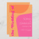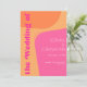 Abstrato retro vintage estilo vintage 70s convite de casamento único com "o casamento de" tipografia ousada em uma vibrante e brilhante paleta de cores mágicas rosa e laranja. ++++++ Observe que todas as cores podem ser alteradas. ++++++++++++ O convite é adequado para casamentos contemporâneos na moda casuais.