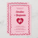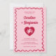Convites Retro Wavy Frame Red Pink Cupid Heart Wedding