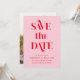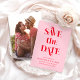 O Retro Wedding Save The Date Photo Invitation irradia vibrações de sulco com sua vibrante paleta de cor rosa e vermelha e sua tipografia lúdica inspirada na década de 60. Ele captura perfeitamente a essência da sua história de amor. Ideal para uma celebração boho-chic, este convite apresenta a sua foto de casal favorita e fácil personalização.