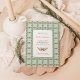 Estes chá de casamento ou convites de chá de panela de férias de inverno, estilo vintage, impressionantes, apresentam um design de Natal branco e colorido. Um arco vermelho vivo é rodeado por uma folhagem botânica verde-aquosa, e um padrão retrorreflector correspondente a um fundo verde-claro constitui a estrutura externa.