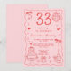 Convites Retro Whimsical Quirky Red Pink 33º Aniversário