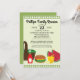 Convite para reunião familiar com uma toalha de mesa verde e branca, uma cesta de piquenique, hambúrguer e melancia e campos de texto personalizáveis para sua reunião.