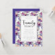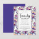 Convite à Reunião da Família de Script Floral com Letra-Mão Elegante - Escrita estilo encantadora e tipografia de estilo manuscrita, rodeada por um jardim de florais roxos, roxos, magenta e roxos. O verso do convite é mostrado em roxo escuro, no entanto, você pode facilmente mudá-lo para o que quiser na ferramenta design.