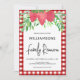 Planejar uma reunião de família? Convide sua família para a reunião com este convite para a reunião da família de verão. É decorada com morangos e folhagem a cores aquáticas, sobre fundo de gingham vermelho. Facilmente personalizável. Todo o texto é editável e pode ser alterado de acordo com seu tipo de evento. Original Watercolor © Michele Davies.