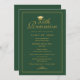 Envie seus colegas de 55 turmas de reunião de classe nosso elegante convite de placa plana com um fundo verde e uma tipografia falsa com script dourado acentuada com um boné de formatura dourado. Personalize com todos os seus detalhes de reunião. Elaborado por ©Susan Coffey.