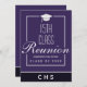 Mande seus colegas de reunião de 15... nosso convite de cartão plano. Esta elegante modelo de design apresenta um fundo roxo e preto com tipografia branca que lê "10ª Reunião de Classe" com o nome da sua escola e ano para personalizar Abaixo está o monograma da sua escola. A parte de trás do cartão tem mais detalhes de celebração para você personalizar. Concebido pelo artista mundialmente famoso ©Tim Coffey.