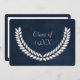 Design de louros de prata sobre fundo de textura azul profunda para reunião de classe por qualquer ano. O ano pode ser personalizado.