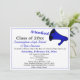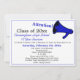 Esta reunião de classe de segundo grau de formato horizontal com design de convite megafone azul apresenta um design azul e branco minimalista. Adicione suas informações aos campos de modelo ou clique em personalizar para selecionar uma cor de tipo, tamanho e estilo preferidos.