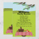 Este convite da reunião de família uma cena de rolar campos verdes e uma mesa de piquenique cobriu com um pano de mesa checkered vermelho e branco, uma cesta do piquenique e a comida. Completamente customizável.