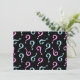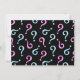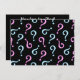 Um padrão de pontos de interrogação rosa e azul em um fundo preto mostrado aqui em um convite para festa de revelação do sexo do bebê. Muitas opções de personalização disponíveis. Escolha as cores do fundo, estilo e cor da fonte, redimensione o padrão e adicione as informações da sua festa. Ótimo para qualquer mãe em gestação!