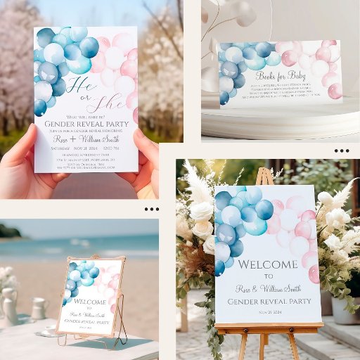 Menina ou Menino Cor de Água Azul e Rosa Revelam Convite
