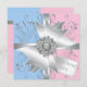 As elegantes espirais prateadas e o grande arco branco com centro de diamante envolto em prata rosa e azul revelam convites de festas. Este adorável e elegante gênero rosa e azul revela design é facilmente personalizado para o seu evento, adicionando detalhes do seu evento, estilo de fonte, tamanho de fonte e cor e texto.
