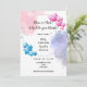 O gênero de tema azul ou rosa revela o convite de festa com corações, estrelas e trabalho de arte de aquarela