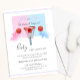 Um esporte com o tema "Sexo bebê" Revela convite de festas. Em fundo branco, o design apresenta um aro de basquete rosa e azul, com duas bolas de basquete entrando em uma elegante fumaça azul e rosa. O texto da tipografia diz ele ou ela, o que será bebê? Personalize editando o convite digital ou impresso com os detalhes do evento.