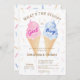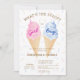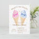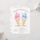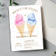 Torne inesquecível a festa de gênero do seu bebê com este convite de sorvete de verão. O design apresenta lindos cones cor-de-água rosa e azuis de gelados em um fazer de fundo de aspersão, tanto na moda como charmoso, enquanto a frase "Qual é a colher?" adiciona um elemento lúdico ao cartão. Use as ferramentas de design para personalizar o texto, a fonte e as cores! Também disponível como download digital.