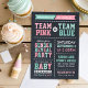 Convide amigos e família para descobrirem se seu novo bebê é um menino ou uma garota com essa bonita tendência de gênero de bebê moderno revelar convite de festas. O design apresenta um tema desportivo, cor-de-rosa ou Team Blue, com uma divertida mistura de tipografia em tons de branco, rosa e azul, num fundo de textura falsa de quadro. Clique no botão Personalizar para alterar as fontes, as cores e mover o texto para criar o seu único design de convite.
