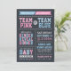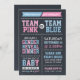 Convide amigos e família para descobrirem se seu novo bebê é um menino ou uma garota com essa bonita tendência de gênero de bebê moderno revelar convite de festas. O design apresenta um tema desportivo, cor-de-rosa ou Team Blue, com uma divertida mistura de tipografia em tons de branco, rosa e azul, num fundo de textura falsa de quadro. Clique no botão Personalizar para alterar as fontes, as cores e mover o texto para criar o seu único design de convite.