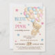 Convites Revelação de Gênero do Urso Azul Rosa-Rosa Minimal