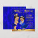 Convite de revelação de gênero de príncipe e princesa étnico para baby shower com adorável príncipe e princesa bebês vestindo roupas azuis reais em um elegante fundo dourado e azul royal damasco. Você pode personalizar facilmente este convite de baby shower de príncipe e princesa para o seu evento, simplesmente adicionando seus detalhes no estilo de letra e redação de sua escolha.