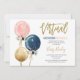 O Gênero virtual revela convite para chás de fraldas, balões florais cor-de-marinho e cor-de-rosa, zoom gênero revela