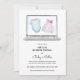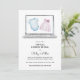 Uma revelação virtual de gênero é um alternativo excelente quando os entes queridos não conseguem se reunir para descobrir o gênero do novo bebê. Este adorável convite apresenta uma ilustração de laptop de aquarela com um vestido cor-de-rosa e uma peça azul. Personalize com suas informações ou clique em "Clique para personalizar mais" para editar estilos de fonte, tamanho e cores.