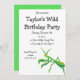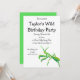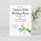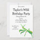 Este convite apresenta uma ilustração pintada de uma mantis oradora em verde brilhante com sotaques laranja e está pronto para ser personalizado com todos os detalhes do seu partido.
