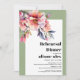 This elegant rehearsal dinner invitation showcases a rhododendron branch with peach-pink flowers in the top left corner. The text is displayed in a bold and eye-catching typography, adding a touch of sophistication to the overall design. Surrounding the invitation are charming sage green borders on three sides, framing the the text. This invitation is sure to set the tone for a memorable and elegant event, inviting guests to celebrate in style.