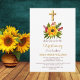 Mola de girassol, convites florais, amarelos neutros, dourados e cristãos brancos. Dourada cruz, minimalista, convites para o Batismo Boho.