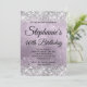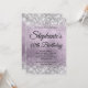 Crie seu próprio convite para comemoração de aniversário de na moda monograma para seu rico. Gráficos brilhantes de cinzas prateadas cintilantes decorativos formam uma borda superior e inferior. A arte digital em segundo plano apresenta uma bonito folha de metal escovada no estilo ombre abstrato de quartzo roxo e pálido. Personalize as cores ou estilos da fonte do convite e do monograma. Os faíscas, brilho e folha de luxo serão criados por elementos artísticos que impressão gostam de uma foto. Fabuloso aniversário de 40 anos para seu melhor amigo.