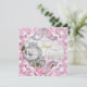Ornamentado da princesa de conto de fadas convite de aniversário com linda carruagem real branca e rosas bonito cor-de-rosa e brilho prateado com lindas espirais cor-de-rosa. Este elegante convite de aniversário da princesa do livro de histórias rosa é facilmente personalizado para o seu evento, simplesmente adicionando os seus detalhes no estilo e cor da fonte, bem como o texto da sua escolha. Esta é uma design impressa com joias não reais, fitas, brilho, etc.