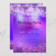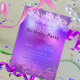 Convite de aniversário personalizado moderno e na moda com um fundo brilhante de abstrato artística em tons roxos e cor-de-rosa com o seu texto. O texto é totalmente personalizável.